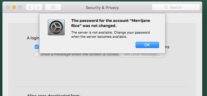 Mac won t join domain. The fact that you don t have access to the server logs implies that you don t have access to the servers which implies that you re not the administrator of the domain you re trying to join this machine to which begs the question. By default the user login options are locked to prevent unauthorized changes. The bad home with wifi where it fails to connect has other computers not macs that can easily connect to its wifi.
